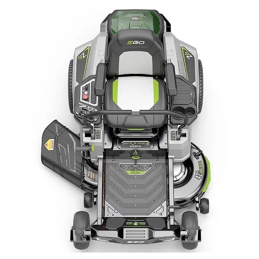 The EGO POWER+ 42 inch. Z6 Zero Turn Riding Mower is a ZTR like nothing else out there. Featuring peak Power+ technology, it can hold up to 6 EGO 56V ARC Lithium Batteries – the same battery technology powering all EGO products, making it the world’s first platform compatible rider. Delivering 22 horsepower, equivalent to a gas engine and reaching a top speed of 8 MPH, the Z6 covers up to 2-acres on a single charge. Customize the ride with a LCD interface featuring 3 driving modes: control, standard and sport – that can be accessed with the simple touch of a finger. Premium features like LED lights, USB charging port and bluetooth come standard to make the experience unlike any other ZTR. Experience zero-turn mowing like never before with the all-new EGO POWER+ 42 in. Z6 zero turn riding mower – power like no other.
