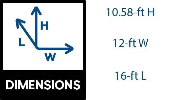 • Dimensions: H 136 in, W 144 in, D 192 in