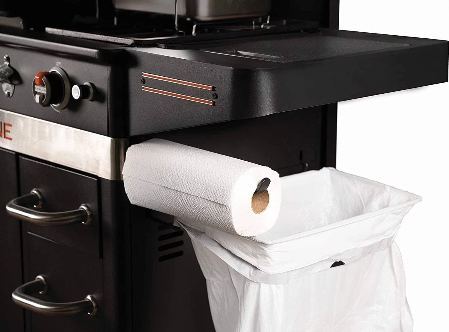 36 inch griddle station with hood. Four independently controlled cooking zones and two 4 qt airfryer drawers and one 4 qt warming drawer. This griddle station also comes with a pivoting paper towel holder, garbage bag holder and dual utility drawers for utensil storage with side cabinet.