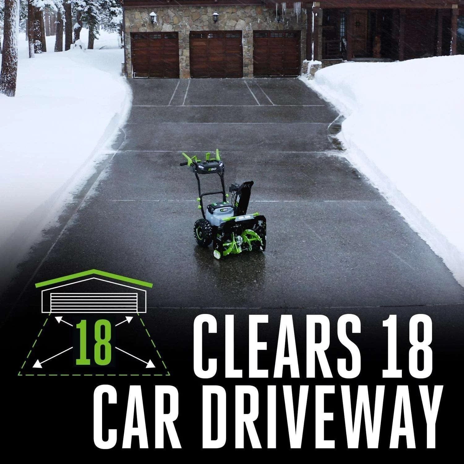 - Clear an 18 car driveway with 8 inch of snow on a single charge