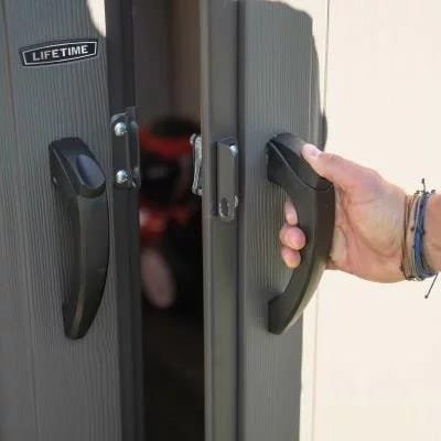 The 10-foot wide Sheds from Lifetime Products give you that extra space needed while accenting the beauty of your backyard. The centralized location of the doors provides easy storage access and the decorative shutters, molded wood-grain panels, and simulated shingled roof ensure an attractive design that will be the envy of your neighborhood.