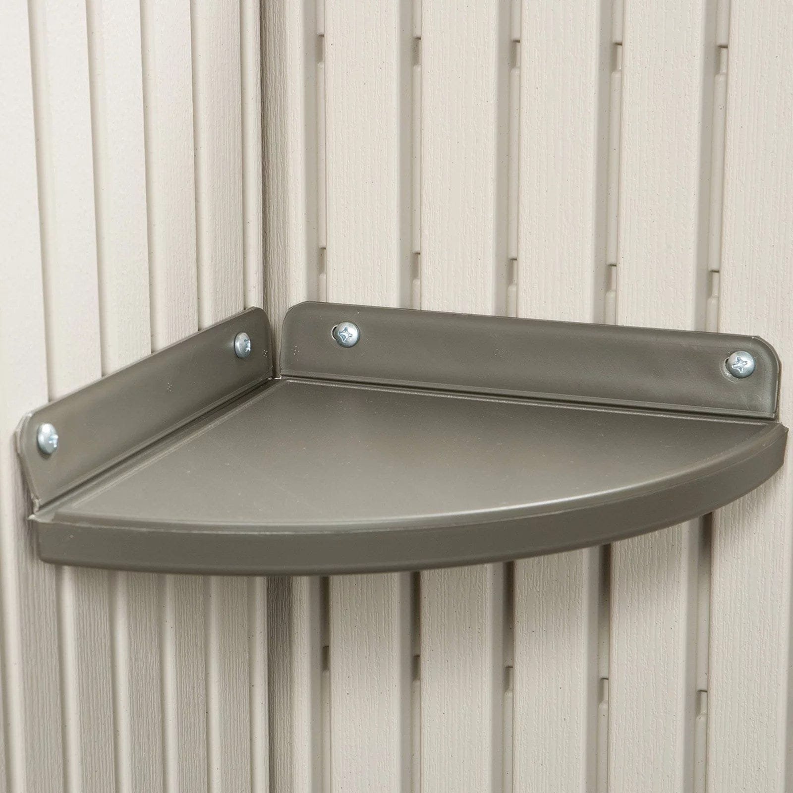 Assembly Required Yes Capacity (cu. ft.) – Total 750 cu ft Color Family Beige Door Type Double Features Door Latch, Double Door, Lockable Door, Shelving, Shutters, Vents, Windows Floor Options With Floor Foundation Foundation Not Included Included Floor Manufacturers Recommended Assembly Time (hours) 6 Manufacturers Recommended Tools needed for Assembly Appropriate Screwdriver and Drill Maximum Roof Load 3312 Maximum Wind Resistance 65 Number of People Recommended by Manufacturer to Assemble 2 Number of Windows 2 Product Weight (lb.) 725 lb Returnable 90-Day Roof Color Family Brown Roof Material Plastic Roof Material Plastic Roof Pitch 6:12 Roof Shape Peak Shed Type Plastic Siding Color Family Brown Storage Capacity (cu. ft.) 749.5 Style Modern Style Garden/Tool Warranty / Certifications